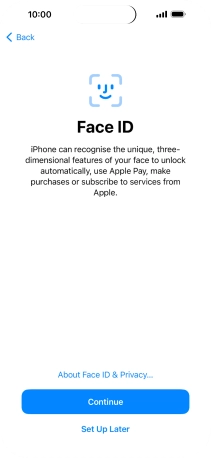 Follow the instructions on the screen to turn on use of Face ID or press Set Up Later.