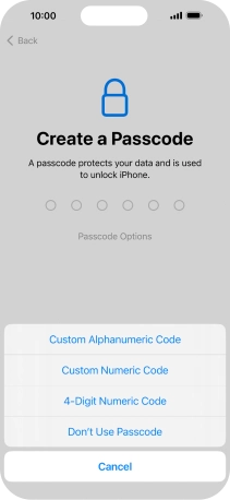 Follow the instructions on the screen to turn on use of phone lock code or press Don't Use Passcode.