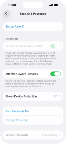 Turn use of phone lock code on your Apple iPhone 15 iOS 26 on or off