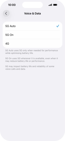 Select network mode on your Apple iPhone 15 iOS 26