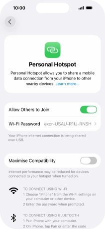 5. Establish connection to personal hotspot from another device