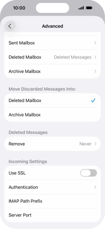 9. Enter incoming server