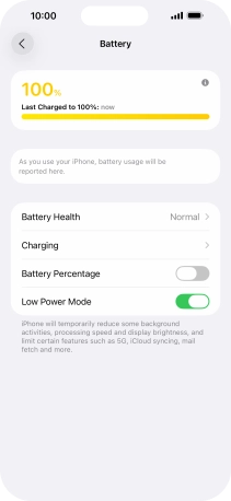 Some functions on your phone use a lot of power and therefore significantly reduce the battery life. You can reduce the power consumption by turning on low power mode.