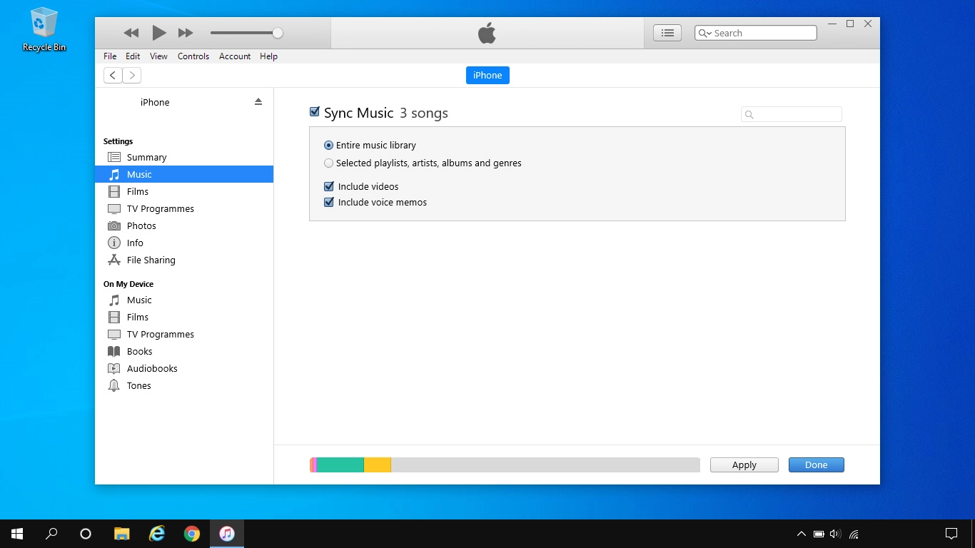 Depending on your settings in iTunes, the transfer may start automatically. To manually start the transfer, click the iPhone icon.