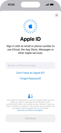 If you don t have an Apple ID, press Don't have an Apple ID? and follow the instructions on the screen to create an Apple ID.