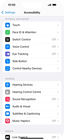 Select accessibility settings on your Apple iPhone 15 Pro iOS 18