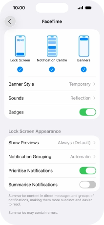 Press the indicator next to "Summarise Notifications" to turn the function on or off.