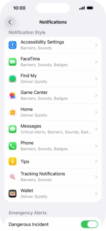 Press the indicator next to "Allow Notifications" to turn notifications for the selected application on or off.