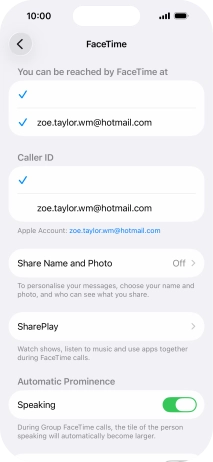 You can select the email addresses and phone numbers others can use to contact you using FaceTime.