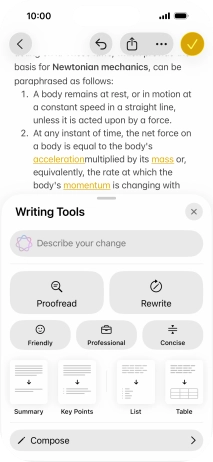Press Describe your change and write in your own words how you would like the text to be rewritten. Follow the instructions on the screen to use the function.
