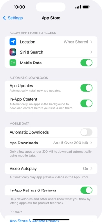 Press the indicator next to "Automatic Downloads" to turn the function on or off.