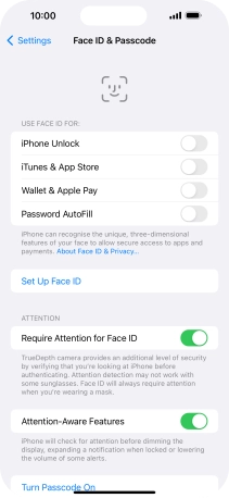 You can use your Face ID to turn off the phone lock code, allow access to apps and authorise payments.