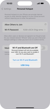 If Wi-Fi is turned on, press Wi-Fi and USB Only.