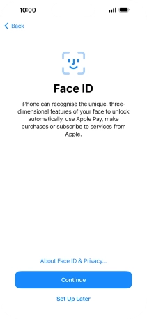 Follow the instructions on the screen to turn on use of Face ID or press Set Up Later.