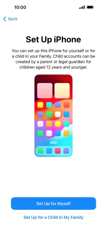 If your phone will be used by a child below the age of 13, follow the instructions on the screen to set up an Apple ID for the child.