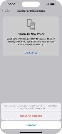Press Reset All Settings. Wait a moment while the factory default settings are restored. Follow the instructions on the screen to set up your phone and prepare it for use.