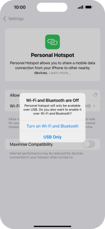 If Wi-Fi is turned on, press Wi-Fi and USB Only.