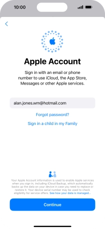 An Apple Account gives you access to a number of services on your phone such as iCloud, App Store and iTunes. To activate an Apple Account on your phone you need to set up your phone for internet.