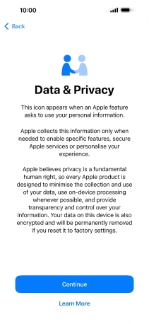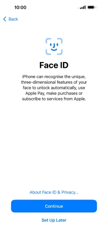 Follow the instructions on the screen to turn on use of Face ID or press Set Up Later.