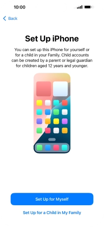 If your phone will be used by a child below the age of 13, follow the instructions on the screen to set up an Apple ID for the child.