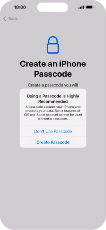 Follow the instructions on the screen to turn on use of phone lock code or press Don't Use Passcode.