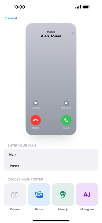 Press Name and follow the instructions on the screen to edit your name on the Contact Poster.