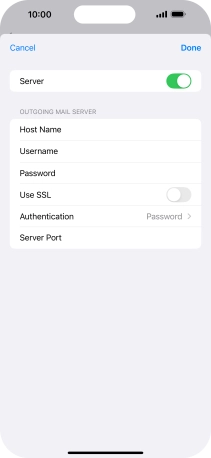 Press Password and key in the password for your email account. Please note that if you're using Vodafone's outgoing server, leave the password field empty.
