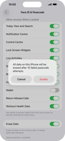 2. Turn on use of phone lock code