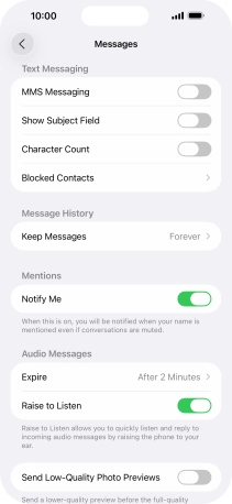 Press the indicator next to "MMS Messaging" to turn on the function.