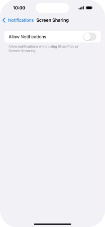 You can turn display of notifications when using SharePlay or Screen Mirroring on or off.