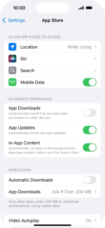 Press the indicator next to "App Downloads" to turn the function on or off.