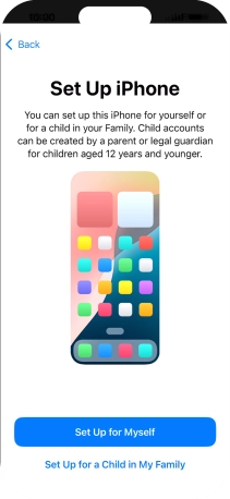If your phone will be used by a child below the age of 13, follow the instructions on the screen to set up an Apple ID for the child.