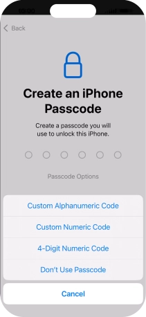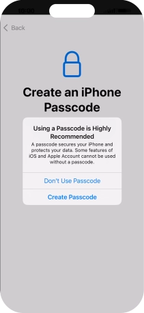 Follow the instructions on the screen to turn on use of phone lock code or press Don't Use Passcode.