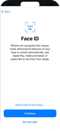 Follow the instructions on the screen to turn on use of Face ID or press Set Up Later.