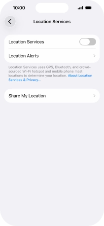 Press the indicator next to "Location Services" to turn the function on or off.