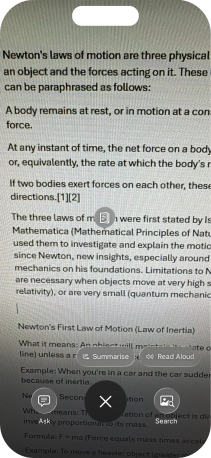 To use visual intelligence on a text, take a picture of the text, press the required setting and follow the instructions on the screen to use the function.