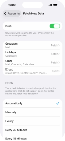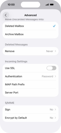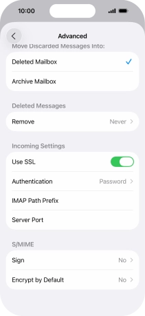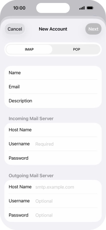 Press the required email account and follow the instructions on the screen to select settings for the specific account.