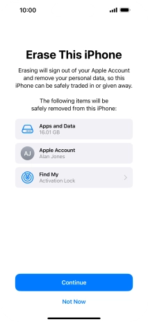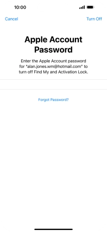 Key in the password for your Apple ID and press Turn Off. Wait a moment while the factory default settings are restored. Follow the instructions on the screen to set up your phone and prepare it for use.