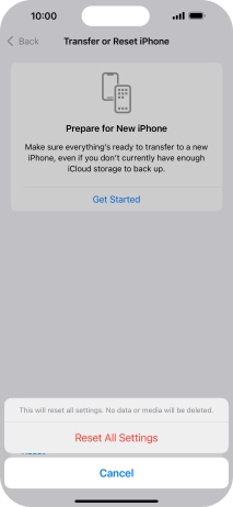 Press Reset All Settings. Wait a moment while the factory default settings are restored. Follow the instructions on the screen to set up your phone and prepare it for use.