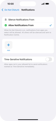 Press Apps and follow the instructions on the screen to select which apps you would like to receive notifications from when Do Not Disturb is turned on.