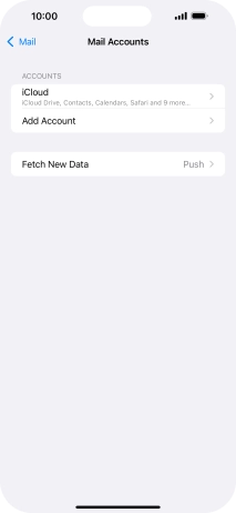Press the required email account and follow the instructions on the screen to select settings for the specific account.