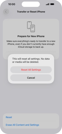 Press Reset All Settings. Wait a moment while the factory default settings are restored. Follow the instructions on the screen to set up your phone and prepare it for use.