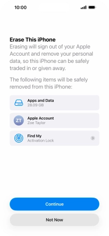 Key in the password for your Apple Account and press Turn Off. Wait a moment while the factory default settings are restored. Follow the instructions on the screen to set up your phone and prepare it for use.