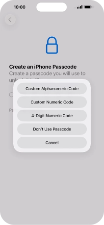 Follow the instructions on the screen to turn on use of phone lock code or press Don't Use Passcode.