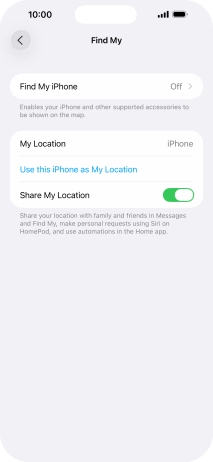 Select settings for Find My iPhone on your Apple iPhone 16 Plus iOS 26