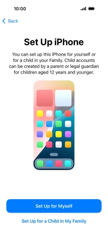 If your phone will be used by a child below the age of 13, follow the instructions on the screen to set up an Apple ID for the child.