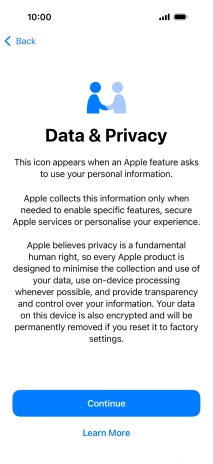 Follow the instructions on the screen to turn on use of Face ID or press Set Up Later.