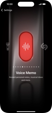Slide your finger right or left on the screen to select the required function.