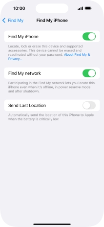 Select settings for Find My iPhone on your Apple iPhone 16 Pro iOS 18