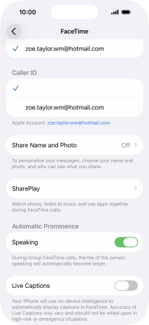 Press the indicator next to "FaceTime" to turn the function on or off.